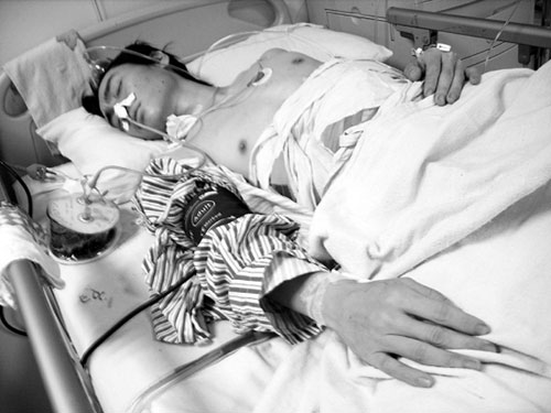 12月9日上午,記者在中國醫科大學附屬第一醫院重癥監護室,看到身受重傷的王某仍躺在病床上接受著治療。據王某的母親介紹,王某今年22歲,原是遼寧某足球隊一名球員。今年年初時,因為家中經濟條件不是太好,再加上外面還有許多債務,無力供王某繼續踢球,王某被迫從球隊回到家中。眼下,家中正托人幫著孩子尋找工作,可工作沒有找著孩子便出了事。