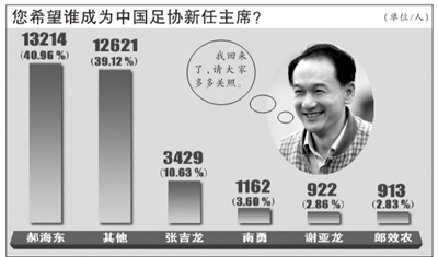 但有一種最直白的說法是:“究竟是誰坐這個(gè)位置,總局和足協(xié)領(lǐng)導(dǎo)其實(shí)心里早就有譜,這些事情不是我們操心的。無論是誰做主席,我們能夠做到的就只有盡力踢球,這也關(guān)系到我們自己的飯碗。”