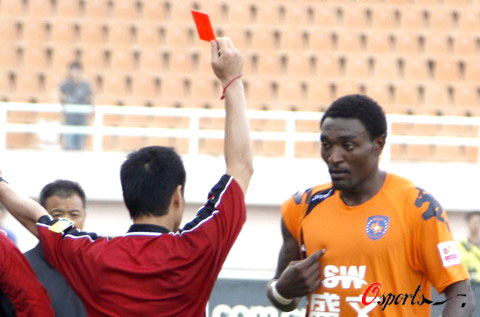 此時(shí),正在青島隊(duì)后場的外援保羅尤如吃錯(cuò)藥一般,儼然武圣關(guān)羽“靈魂附體”,從后場狂奔50米沖到事發(fā)地點(diǎn),分別與遼寧隊(duì)幾名本土球員以及外援格里菲斯發(fā)生爭執(zhí),甚至還施展鎖喉大法,雙手卡住格里菲斯的咽喉,頗具千里走單騎,過五關(guān)斬六將之風(fēng)。主裁當(dāng)即將這位勇若張飛、豪比關(guān)羽的黑面大俠請出了綠茵場。