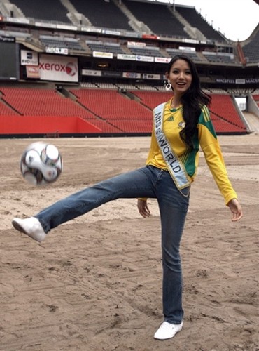 中新網(wǎng)11月21日電 當(dāng)?shù)貢r(shí)間22日,2009年聯(lián)合會(huì)杯抽簽儀式將在南非城市約翰內(nèi)斯堡舉行。包括世界小姐張梓琳在內(nèi)的各國(guó)佳麗應(yīng)邀前往,在約翰內(nèi)斯堡的埃利斯球場(chǎng)大秀球技。