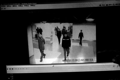 記者是昨日17時30分左右,進入監控室。當記者提出要看當日賽后的監控錄像時,監控室里的工作人員很熟練地找到錄像視頻并將視頻快進到事發時間段,還告訴記者,劉煒和上海隊幾點開始行動,顯然他們已經看這段錄像很多次了。不過,看完這段11分鐘(22時-22時11分)的監控錄像后,讓目睹“打架門”整個過程的記者驚訝的是,由于當時通道上方的攝像頭對準的是上海隊休息室方向,監控錄像記下的是上海隊隊員在向攝像頭方向來回走動、張望以及上海隊員沖向攝像頭的畫面,并沒有記錄下打架的場面。