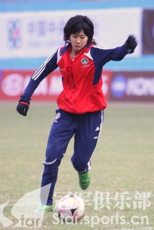 8月12日,北京奧運會女足預賽,中國對阿根廷的比賽在秦皇島奧體中心舉行。韓端首開阿根廷大門,為中國隊建頭功。 中新社發 劉新 攝