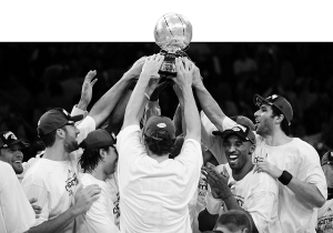 五彩紙帶從斯臺普斯的屋頂飄下,狂歡聲此起彼伏,閃光燈閃爍不停,科比與鄧肯輕輕相擁,科比帶著勝者特有的微笑,石佛的臉上讀不出任何表情,只有滿眼的失落。一個人能不能拯救球隊?湖人可以、馬刺卻不能。西部冠軍獎杯被高高舉起,不同的是,主角變了,100比92,湖人總比分4比1淘汰馬刺,時隔4年之后重返總決賽。留給馬刺的是依舊無法衛冕的宿命。