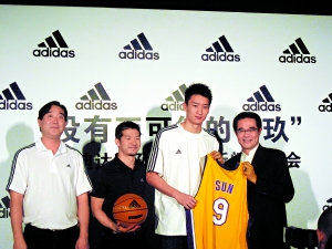 今天上午,阿迪達斯在其全球品牌中心與素有“全能后衛”之稱的中國籃球運動員孫悅舉行了簽約新聞發布會。孫悅下周即將出征NBA,此番加盟阿迪達斯為其踏上國際化征程注入了強心劑。孫悅的加入,令阿迪達斯籃球明星隊伍一再擴大。孫悅在湖人隊的號碼是9號,阿迪達斯也特意選取9月9日9時9分作為簽約發布會的時間,并以“沒有不可能的‘玖’”作為發布會主題來強調此次合作的重要意義。作為入選NBA的第一個打外線位置的中國球員,孫悅在NBA聯盟和湖人隊中將經歷更多的磨練。