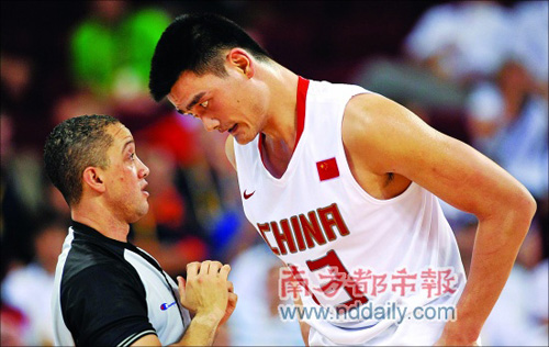 北京時間昨天,德國最大的體育傳媒《踢球者》公布了第39屆德國2008年度最佳體育圖片獎,其中姚明在北京奧運上一幅質問裁判的照片被評為“北京奧運類”最佳照片。姚明的這張“質疑裁判”照片是發生在奧運小組賽上,中國與德國較量中,這是一場決定誰能夠出線的生死戰,所以賽場上雙方拼搶非常激烈,火藥味十足。而一次有爭議的判罰,導致姚明來到場邊與裁判交涉,于是就有了這樣一張照片。