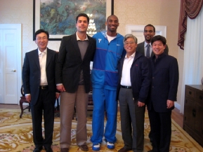 科比感謝張總領事邀請他來官邸作客,并愉快地憶及去年8月赴京參加北京奧運會的情景。科比表示,親身參加北京奧運會是他巨大的榮耀。在華期間,他初步領略到了絢麗多彩的中國文化和快速發展的中國社會,充分感受到了中國人民的友好情誼。他熱愛中國,希望早日重訪中國,進一步加深對中國的了解。同時,愿發揮自身影響力,為促進美中兩國青年間的相互溝通與交流,特別是為兩國弱勢兒童的福祉做些實事。