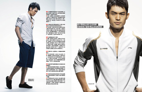 林丹:呵呵,也沒有那么好,只不過我們平時(shí)運(yùn)動(dòng)時(shí)間特別緊張,空閑時(shí)間很少,所以看雜志是很多運(yùn)動(dòng)員的放松方式。我就很喜歡看時(shí)尚雜志,另外我也會(huì)經(jīng)常出國(guó)比賽,會(huì)看到一些比較時(shí)尚的事物。最主要看自己的敏銳度,多去觀察,尋找適合自己的東西,不一定要跟流行,比如今年流行裙子,但我不可能跑去買條裙子穿。