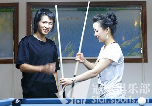 華奧星空上海5月16日電(記者李磊 攝影報(bào)道)一個(gè)是臺(tái)球技術(shù)最好的職業(yè)車手,一個(gè)是賽車技術(shù)最好的職業(yè)球手,兩位極具人氣的明星終于在臺(tái)球桌上遭遇了。昨天下午,“九球天后”潘曉婷在自家的練球房里與作家車手韓寒進(jìn)行了一場(chǎng)友誼賽。雖然韓寒的球技已算是車手中的頂尖水平,但跟職業(yè)球手相比還是有不小的差距。雖然“潘老師”一邊現(xiàn)場(chǎng)指導(dǎo),一邊也手下留情,但最終還是以十余場(chǎng)全勝的戰(zhàn)績(jī)把韓寒打得“落花流水、心服口服”。