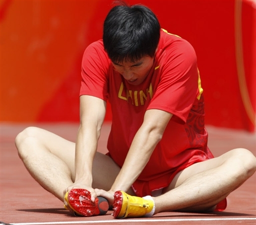 8月18日,奧運男子110米欄第一輪比賽中,中國名將劉翔因傷退出比賽。 在賽前暖身中,劉翔顯示他的腳傷還是有些問題,在第一槍選手搶跑之后,劉翔選擇退出了比賽,提前告別北京奧運會。 chinanews發 攝