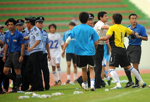 2009年7月26日,全運會男足甲組小組賽最后一輪比賽中,北京隊3-1戰勝天津隊,失敗的天津隊員將怒火撒向當值主裁判何志彪,數名天津球員狂奔150米追打主裁判何志彪,并有飛踹等瘋狂行為。隨后全運會紀委會取消了天津全運會男子足球甲組代表隊全運會決賽階段比賽和足球項目全運會體育道德風尚獎的評選資格。