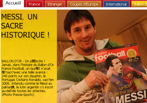中新網12月1日電 今天上午,《法國足球》雜志公布了2009年金球獎的最終結果,阿根廷籍的巴塞羅那球星梅西首度榮膺此項殊榮。