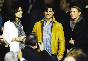 眾所周知,好萊塢大牌影星湯姆·克魯斯因為與貝克漢姆夫婦是密友,因此受到小貝的影響,阿湯哥對足球也有一定興趣。在昨天的歐冠比賽中,阿湯哥“叛變”了皇馬與米蘭,轉而來到現場為西甲勁旅塞維利亞吶喊助威。這一次,阿湯哥捧場的是塞維利亞主場與蘇超格拉斯哥流浪者的比賽,F場觀戰歐冠,阿湯哥的排場也很大,身邊伴隨了兩位大牌美女,一是他的嬌妻凱蒂·赫爾姆斯,另一位則是好萊塢著名美女影星、阿湯哥的好友卡梅隆·迪亞茲。