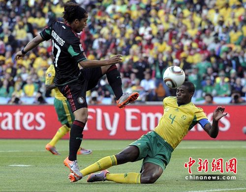 中新網(wǎng)6月11日電 在剛剛結(jié)束的世界杯揭幕戰(zhàn)中,東道主南非隊(duì)迎來了小組賽首個(gè)對手、中北美勁旅墨西哥隊(duì),最終經(jīng)過90分鐘鏖戰(zhàn),兩隊(duì)在下半場各自攻入一個(gè)精彩進(jìn)球,比賽以1-1結(jié)束。