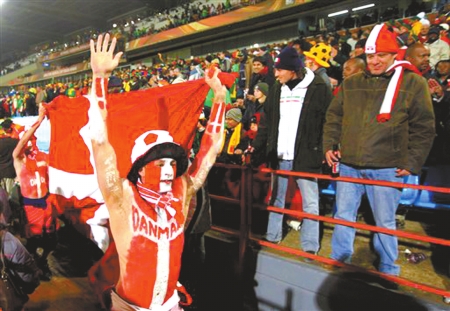世界杯第一次在非洲、在冬天舉行,看臺上再狂熱的球迷,面對刺骨的寒風,也只能先把自己裹成粽子。不過,沒有最狂熱只有更狂熱,在喀麥隆隊與丹麥隊的比賽中,兩名丹麥球迷上演了本屆世界杯的首例“裸奔”。