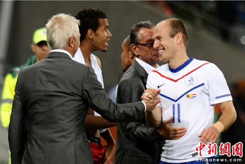 第76分鐘,埃托奧接隊友妙傳大力射門,皮球勢大力沉打在后衛身上。第83分鐘,荷蘭隊卷土重來。替補登場的羅本接斯內德妙傳轉身之后射門擊中立柱,亨特拉爾侯個正著輕松推射空門,將比分鎖定為2-1。荷蘭隊在獲得一場勝利的同時,也鎖定了自己的小組頭名位置。
