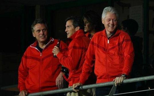在觀看了美國隊與阿爾及利亞隊的比賽后,克林頓連續(xù)第二場比賽觀看美國隊的比賽。本場比賽,他又如約出現(xiàn)在看臺上,為美國隊加油助威。與上一次和國際足聯(lián)主席布拉特一起觀看比賽不同,這一次他拉來了好朋友、搖滾巨星米克•賈格爾,以及兩名記者。