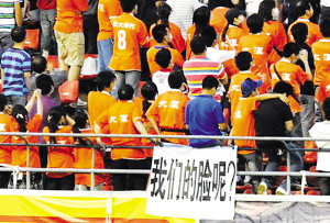 球迷無(wú)聲的抗議帶給魯能巨大的壓力,更大的尷尬在比賽結(jié)束后到來(lái)。0比0,魯能成為本輪中超惟一一支沒(méi)能在主場(chǎng)贏球的球隊(duì),這場(chǎng)平局讓他們把中超榜首位置讓給了北京國(guó)安隊(duì)。比賽結(jié)束后,賽場(chǎng)上的球迷出聲了,“下課……”