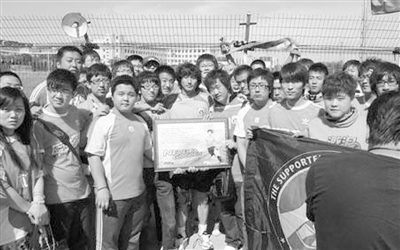 昨天下午,在球隊進行訓練之前,球迷代表將一個精美的鏡框贈送給了安貞煥,上面除了有安貞煥的照片外,還有一段是用韓語寫的文字,其主要內容是“希望安貞煥留在大連”、“你將成為我們心中新的國王”、“大連球迷會像愛戴家人一樣愛戴你”、“你將在大連重新獲得新的輝煌”等。