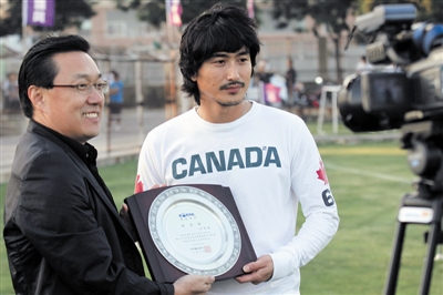 昨天下午,在大連隊訓練時,來自韓國的KSB電視臺采訪組,一直在場邊拍攝安貞煥的訓練畫面。訓練結束后,他們邀請安貞煥做了一個訪談節目,介紹安貞煥在大連的足球生活。韓國鐵道部旗下的一家鐵路建筑公司,邀請安貞煥擔任他們的形象大使,采訪組代表在訓練場邊向安貞煥贈送了“形象大使”的紀念獎杯。