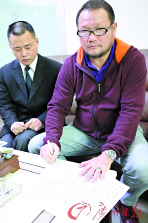 陳亦明在律師事務所簽署個人聲明。 本報記者 廖藝 攝