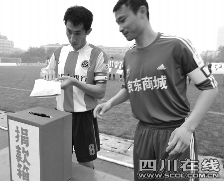 2:1的勝利結束之后,連續兩 場進球的成足隊長李鋼說,“希望災區的人們像我們今天比賽一樣,無論遇到什么樣的困難,只要我們團結一心,只要我們選擇堅強,我們都能獲得最終勝利!”比賽結束之后,球迷散去的人群中還有纏著綠絲帶的志愿者球迷在募捐,“球賽盡管結束了,可是我們還想為災區再多做一點事情,我們做得越多,他們受到的苦難就會越少。”