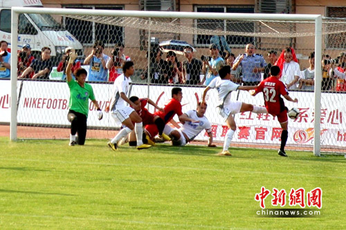 下半場易邊再戰,雙方球員拼搶勢頭更加激烈。第67分鐘,南昌隊在禁區內獲得點球機會,門將程曉鵬主罰點球被撲出,焦鳳波接著補射再次被擋出,但隨后被回防的泰達隊佐里奇把球打在焦鳳波身上彈進球門,裁判示意進球有效。