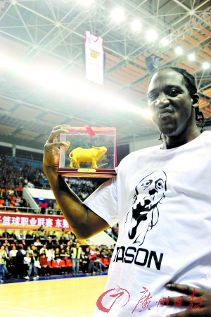 廣東宏遠(yuǎn)東莞銀行今晚(23日)戰(zhàn)勝福建潯興的比賽,只是為了告別一個(gè)人,他叫積臣。從1998年開始,他在廣東宏遠(yuǎn)效力了10年,是球隊(duì)奪得5個(gè)總冠軍的功臣。他的15號(hào)球衣將從俱樂部永久退役,這是給功臣最高的榮譽(yù),積臣是CBA中第一個(gè)享有這項(xiàng)榮譽(yù)的外援,也是繼姚明之后的第2人。