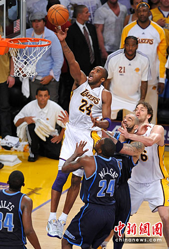 如往常不同的是,此役開局后爵士一反常態反客為主,在德隆帶領下打出一波8比4的進攻高潮。不過坐擁主場的湖人很快穩住陣勢,內線搭檔加索爾和拜納姆更是占盡絕對優勢連續籃下得分攻,幫助球隊將比分追成10平。隨后科比發飆率隊打出一波12比3的高潮,首節過后,湖人以30比23領先。