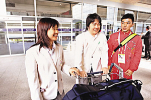 日乒隊昨日全軍抵港,不過球隊分成2組步出機場,其中福原愛為避記者鏡頭,于抵港后1小時才與男隊現身。全程未發一言的福原愛素顏上陣,更要求隊友為她遮擋記者鏡頭。另一小將石川佳純則全程表現十分大方,更以流利國語回答記者問題:“今次賽事,香港是很強的球隊,我特別希望可親手擊敗她們。”雖然對東亞運感到期待,但卻認為東亞運氣氛不足,“我從抵港后在閘內閘外都感受不到東亞運舉辦的氣氛,今次來港如有時間我也會去看看其它比賽項目,但也希望能一嘗香港聞名的云吞面。”被記者問及會否觀看中國“欄王”劉翔的比賽時,石川佳純一臉茫然表示:“我不知道誰是劉翔。” (慧 華)