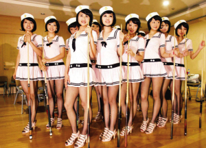 于是,身著類似水手服飾的九球寶貝們除了在每一輪場間跳起熱辣的舞蹈營造現場氣氛,她們另一項重要工作便是當禮儀小姐引導球員入場,并且為雙方選手碼球。此外,寶貝們還臨時客串起了裁判工作。漂亮的九球寶貝們無疑成為九球中國賽的一道靚麗風景線。