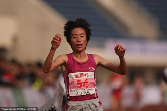 中新網10月18日電 18日上午,在2009年北京國際馬拉松賽女子組的爭奪中,世錦賽冠軍中國選手白雪最終奪冠,這也是全運會的馬拉松比賽女子金牌。她的成績是2小時34分43秒。