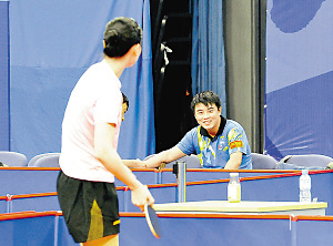 20日下午,王皓在場邊觀看隊(duì)友張繼科與雷振華的練習(xí)賽。王皓看了一會(huì)兒之后,忍不住回過頭盯著彭陸洋和文佳的練球。沒過一會(huì),張繼科與雷振華休息,王皓干脆扭過頭來,看起彭陸洋和文佳的練球,他看得非常入神,一直默不作聲,也一直沒有換過坐姿。