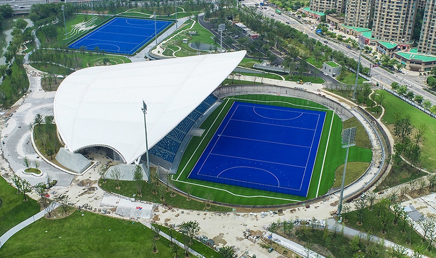 拱墅運(yùn)河體育公園體育場(chǎng)為亞運(yùn)會(huì)曲棍球項(xiàng)目比賽場(chǎng)地,位于杭州市拱墅區(qū),在亞運(yùn)村西北方向且相距約14.5公里,含主比賽場(chǎng)和熱身場(chǎng)、兩層賽時(shí)配套用房,賽后將作為游客接待中心使用。總建筑面積27121平方米,觀眾席位數(shù)4870座。