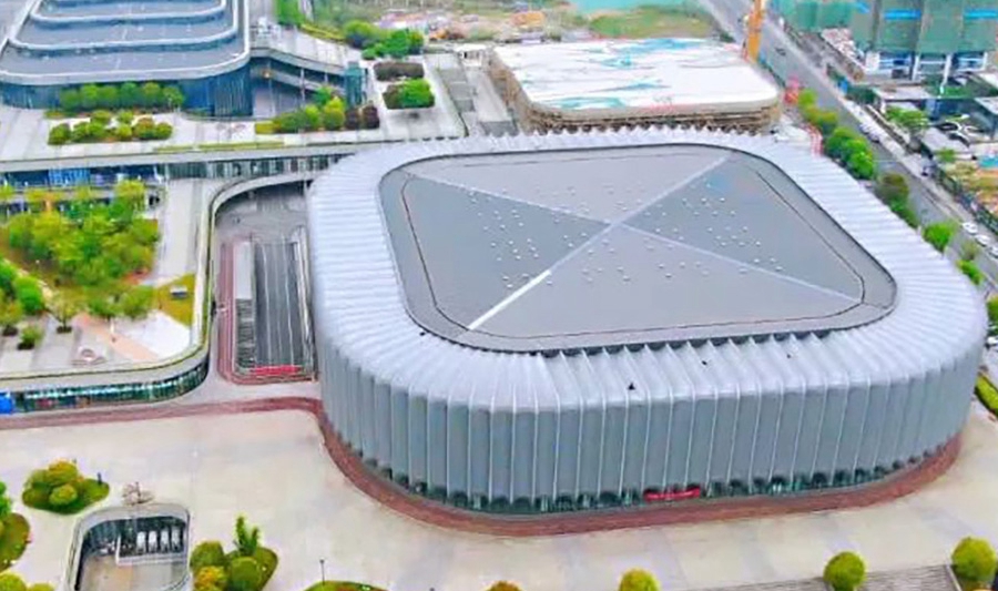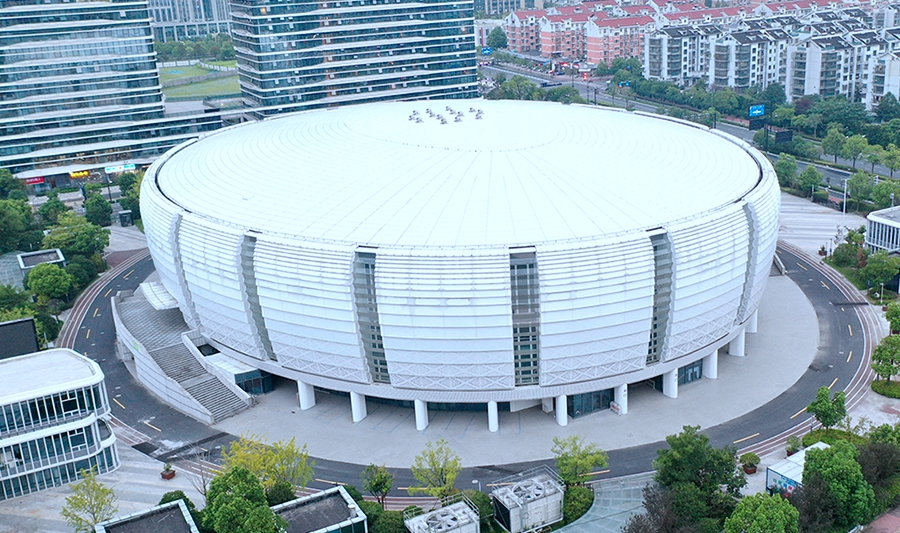 臨平體育中心體育館為亞運(yùn)會(huì)武道(空手道)、排球項(xiàng)目比賽場(chǎng)地,位于杭州市臨平區(qū),含比賽館及熱身館。總建筑面積16888平方米,觀眾席位數(shù)3340座。