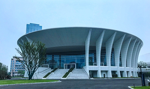 紹興奧體中心體育館為亞運(yùn)會(huì)籃球項(xiàng)目比賽場(chǎng)館,位于紹興市越城區(qū),在亞運(yùn)村東南方向且相距約38.8公里。總建筑面積72010平方米,觀眾席位數(shù)9552座。場(chǎng)館圓形的外殼,規(guī)則的銀灰色流線型線條,像是江南水鄉(xiāng)常見(jiàn)的河蚌。