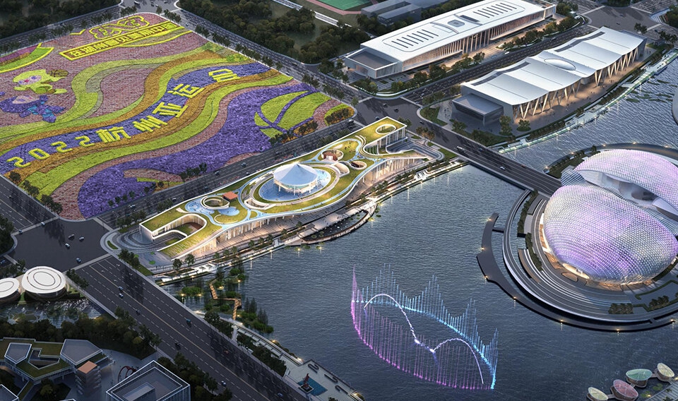 富陽(yáng)水上運(yùn)動(dòng)中心為亞運(yùn)會(huì)賽艇、皮劃艇(含靜水、激流回旋)項(xiàng)目比賽場(chǎng)地及訓(xùn)練場(chǎng)地,位于杭州市富陽(yáng)區(qū)北支江南岸,地處亞運(yùn)村西南側(cè)且相距約36公里,含賽事管理、場(chǎng)館管理、觀眾服務(wù)和新聞媒體等功能。賽艇、皮劃艇(靜水)項(xiàng)目總建筑面積64013平方米,皮劃艇(激流回旋)項(xiàng)目總建筑面積3700平方米,觀眾席位數(shù)3000個(gè)。