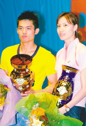 林丹、謝杏芳這對羽壇情侶前天在球迷為林丹舉辦的生日晚會上表示,他倆將在2008年奧運會之后考慮婚事,林丹同時表示,自己可能將在2012年奧運會后才會退役,而謝杏芳則基本確定將會在北京奧運會后脫下國家隊?wèi)?zhàn)袍。
