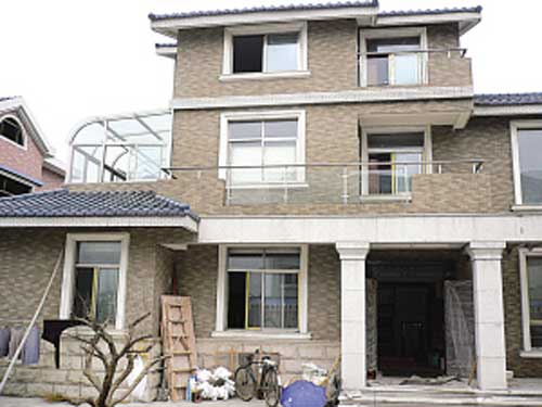 早就聽說丁俊暉家的豪宅要裝防彈玻璃,趕到現場記者第一時間找到了客廳的那扇大窗。據說,圖紙上原先預留的窗戶位置更大,全是落地窗,但考慮到安全因素,丁家還是決定把窗的位置往上抬了一點,但已非?捎^。記者走進大窗仔細觀察了一番,玻璃確實很厚,“不是防彈的,因為窗子大,所以玻璃要厚一點,當時是開玩笑說玻璃要厚到防彈才行,”照看屋子的沈大媽笑瞇瞇地告訴記者。