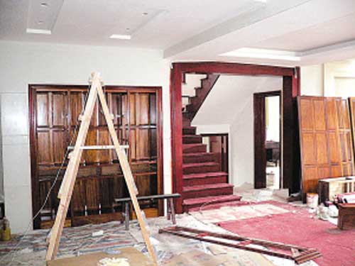 在丁俊暉的伯父丁龍君的帶領下,記者參觀了“江南春天”的內部裝修。盡管屋子里仍堆放著一些尚未完成的家具,但整體裝修已經初步完成。走進客廳,一張紅木的大圓桌映入眼簾!斑@桌子全紅木的,光雕工就要3千多塊,”丁龍君一邊說一邊指著放在邊上尚未拼裝起來的三個大床,“這幾張床也是紅木的,我們請的宜興的師傅,雕工相當棒的,這件房子里,只要是木頭就都是紅木的,除了桌子椅子、床和衣櫥,二樓和三樓的博古架,我們連廚房的櫥柜也都用的紅木,包括家里的樓梯、房門和門套!倍↓埦嬖V記者,丁俊暉的父親很喜歡紅木的家具,所以在裝修之前花了40多萬買了紅木的木料,家里的家居都是專門請師傅根據丁俊暉爸爸的要求打的,連工錢一起花了將近60萬。