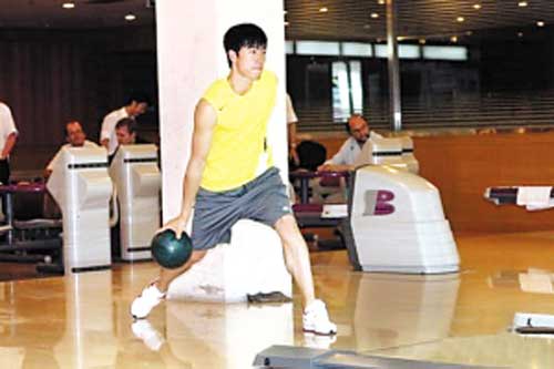 “飛人”劉翔忙里偷閑 打臺球保齡姿勢有板有眼