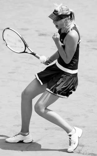 昨天,2008賽季法國(guó)網(wǎng)球公開(kāi)賽繼續(xù)第四個(gè)比賽日的爭(zhēng)奪。因?yàn)榇笥辏^號(hào)種子莎拉波娃的首輪比賽被推遲到了第四天方才登場(chǎng),結(jié)果身著最新靚麗戰(zhàn)袍,戴著18K金耳環(huán)閃亮首秀的俄羅斯美少女意外陷入苦戰(zhàn),最終憑借長(zhǎng)盤(pán)決勝,才以總比分6∶1/3∶6/8∶6艱難擊敗世界排名從沒(méi)有進(jìn)過(guò)前100位的同胞羅迪娜,晉級(jí)第二輪。