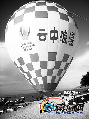 早上8時30分,楊威、楊云以及婚禮設計師小熊等人來到了天涯海角景區(qū)愛情廣場進行彩排。記者在現(xiàn)場看到,一個高約30米的巨大粉色熱氣球矗立在沙灘之上,楊云和伴娘孫曉嬌站在熱氣球里和設計師商談次日的細節(jié)。記者看到,這個熱氣球設計極為大氣,熱氣球上打著粉色的格子,上面寫著四個大字:云中浪漫,旁邊還寫著英文:Romance in the air。據(jù)拉熱氣球的師傅告訴記者,這個熱氣球的造價約為10萬元。