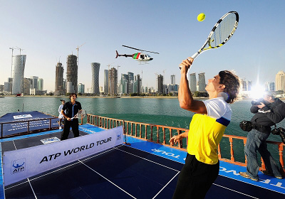 2009年,ATP(國際職業網球聯合會)推出了全新的世界巡回賽,為宣傳這一嶄新的賽事,ATP官方昨天請到了當今世界男子網壇兩大天王納達爾和費德勒,讓他們在多哈一艘傳統的阿拉伯帆船上進行了一場網球賽。波斯灣上的帆船上,世界上最優秀的兩位球員踏上特制的賽場,為ATP世界巡回賽的起航而揮拍。