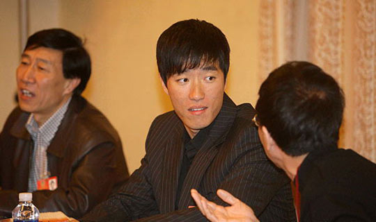 中新網北京3月11日電(記者 沈晨)11日上午,身著黑色條紋西服的劉翔出現在全國政協十一屆二次會議體育界小組討論會上。他第一個發言介紹了自己的近況,并表示愿意和各方政協同仁們共同努力,認真履行委員職責。