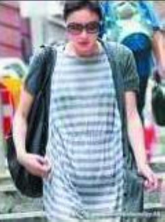上周四下午3時許,有港媒記者拍到樂基兒頂著32℃高溫現身中環,她一反常態,穿著一件樸素、灰色條文的連身洋裝,搭配平底鞋,然后以龜速小心翼翼走樓梯,小腹明顯微凸,當時恰巧微風徐徐吹來,樂基兒微微隆起的腹部更加明顯,她雖未發現媒體跟拍,仍拿出外套遮肚,行徑詭異。