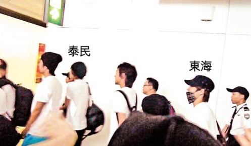 中新網7月22日電 據香港媒體消息,韓國人氣組合 Super Junior成員東海,昨日在臺風及暴雨之下抵港,為韓國綜藝節目《 Dream Team 2》拍外景,同行還有 SHINee的泰民和 U-Kiss成員 Alexander。大批粉絲在機場接機,當戴上口罩的東海出閘時,現場一陣轟動,之后他們隨即坐車到上環醫肚和開工,沿途更有粉絲追車跟蹤。據悉東海今日離港,旋風式結束香港之行。