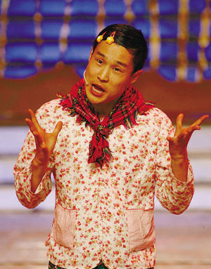 這期《新聞周刊》的文章說(shuō),外表上看來(lái),小沈陽(yáng)很謙虛禮貌,很難想像他畫著大濃妝、帶著發(fā)卡、穿著禮服在臺(tái)上喝啤酒、講下流笑話、活蹦亂跳、大喊大叫的樣子。最近一次演出中,他穿著帝王式的絲質(zhì)長(zhǎng)袍,卻背了一個(gè)粉紅色的Hello Kitty的書包。