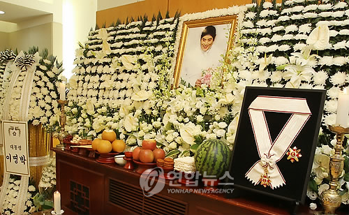 韓國總統室室長任太熙于13日下午5時許前往設置在首爾蓮建洞首爾大學醫院的靈堂,代替李明博總統向故人授予了金冠文化勛章。