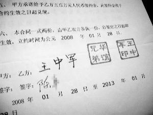 陳先生稱,2008年1月,小陳經(jīng)人介紹,與華誼兄弟音樂文化傳媒有限公司法定代表人王忠軍簽訂藝人簽約合同書。合同中約定,小陳可獲得一筆500萬元的簽約金,并保證第一年全年的薪酬不低于500萬元。但此后王忠軍找借口一直沒有支付,小陳也在錄了幾首歌曲后就沒有任何演藝活動(dòng)。王忠軍此后還出具了一份證明,約定將簽約金打給小陳的時(shí)間,同樣沒有兌現(xiàn)。在等待了兩年之后,小陳將王忠軍起訴到東城法院。