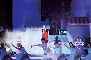 在眾人的歡呼聲中,趙薇開腔演唱了新專輯中的歌曲《江城子》。舞臺上是連綿的徽派建筑布景,在白衣舞者的簇擁下,舞臺上的趙薇仿佛與故鄉的景物融為一體。